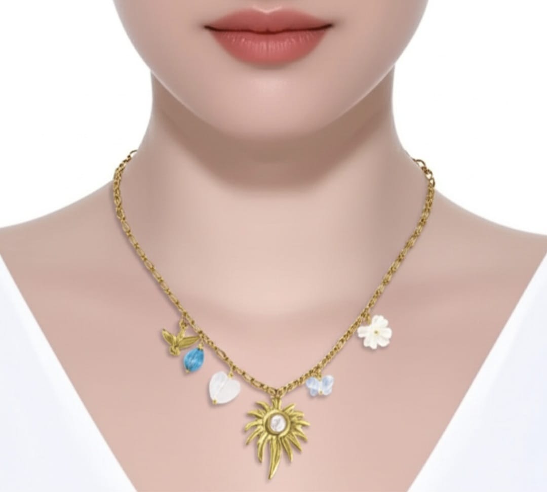 Esta cadena en acero inoxidable combina un diseño moderno y juvenil con dijes colgantes que añaden dinamismo y personalidad. Su construcción resistente asegura durabilidad, mientras que el acabado pulido ofrece un brillo sutil, ideal para complementar estilos casuales y contemporáneos con un toque sofisticado.